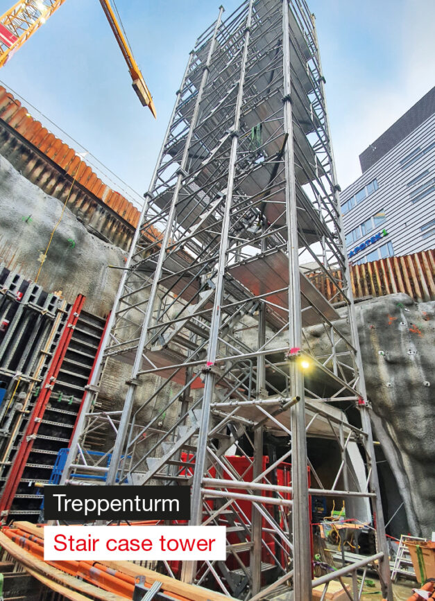 L’étaiement de coffrage Alu TITAN reprend des charges en tous genres et se distingue par sa souplesse et sa longévité. Ce système permet à l’entreprise de faire face à toutes les spécificités du chantier, qu’il s’agisse de cage d’escalier, de structure portante, de table de coffrage, de table de rive ou de chariot de coffrage pour les tunnels.