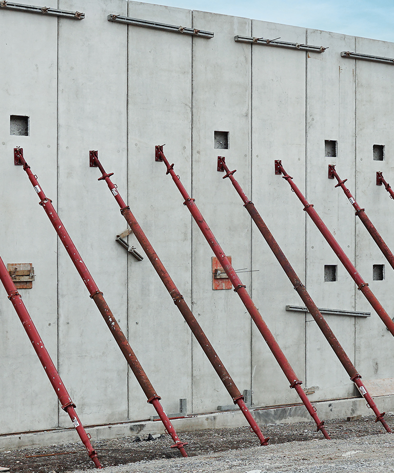 - Grandes surfaces avec des dalles en béton coulé sur place, mais le plus souvent en éléments préfabriqués