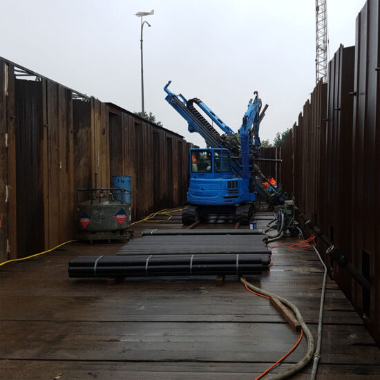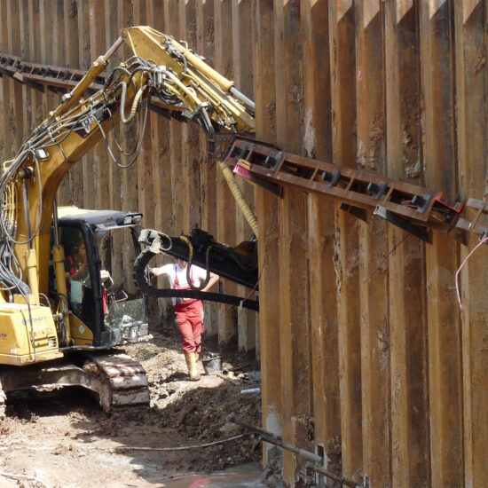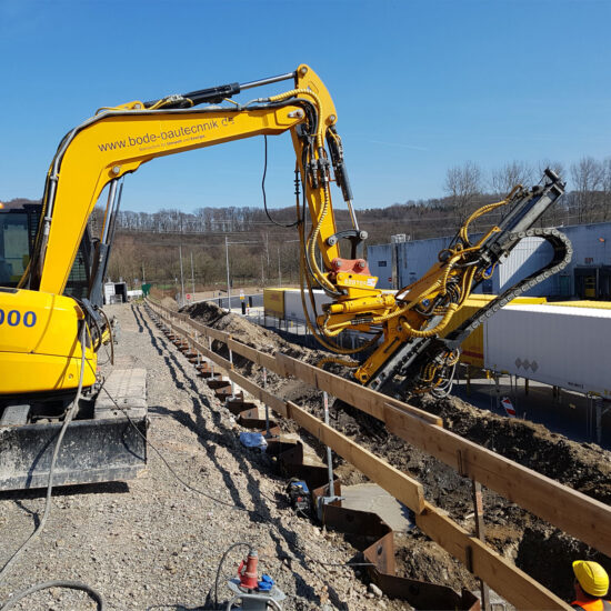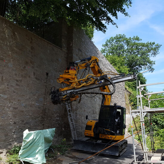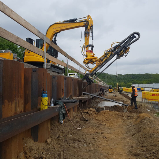 Bien entendu, les micropieux conviennent également à des applications temporaires (< 2 ans). L’ancrage injecté temporaire est mis en œuvre conformément à la norme EN 1537 en liaison avec l’annexe allemande DIN SPEC 18537.