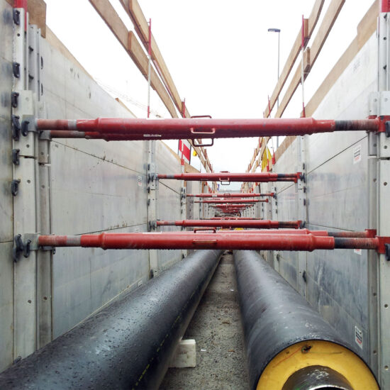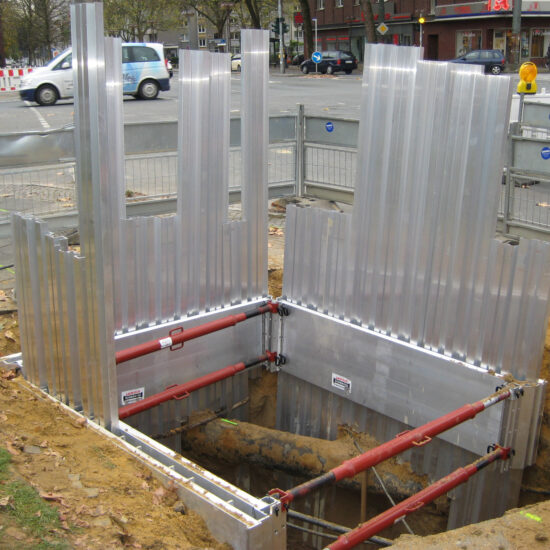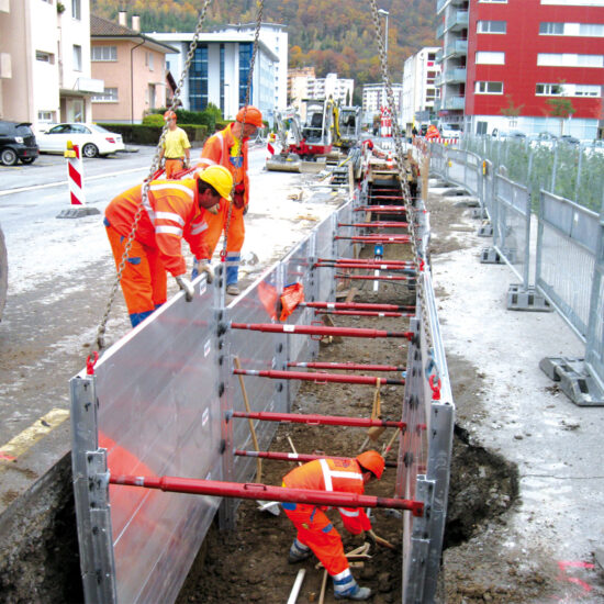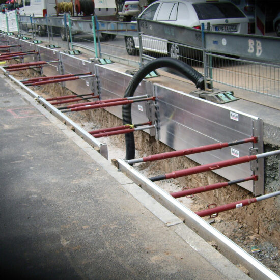Le blindage Alu GIGANT est le système idéal pour les tranchées en zone urbaine, les raccordements privés ou les travaux de révision. Ce système modulaire en aluminium est un juste milieu entre le blindage acier souvent trop lourd et peu maniable et le blindage en bois. Depuis 30 ans déjà, notre blindage Alu GIGANT fait partie des systèmes de blindage les plus appréciés. Il séduit par sa légèreté, sa durabilité et sa simplicité de mise en œuvre.